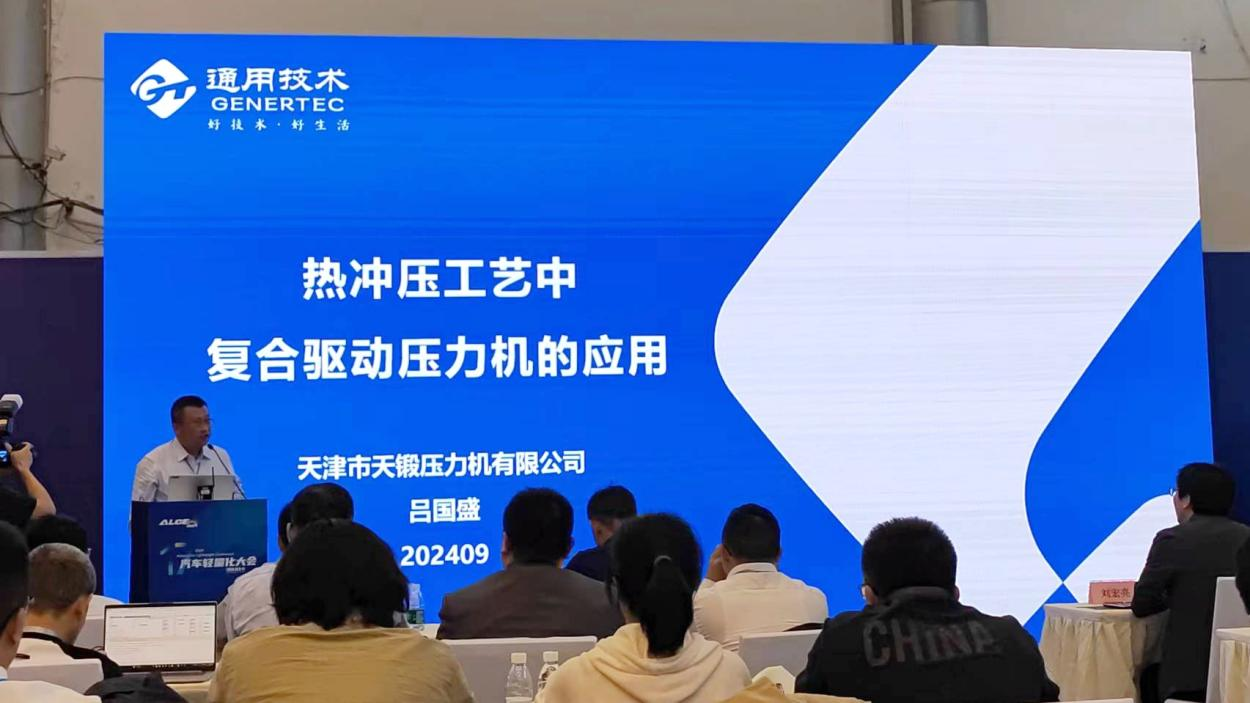 展會(huì)期間,公司總經(jīng)理劉林志、副總經(jīng)理王世明帶領(lǐng)市場(chǎng)營(yíng)銷人員接待來訪領(lǐng)導(dǎo)和客戶,介紹公司核心技術(shù)和產(chǎn)品,展示公司整體實(shí)力及在國(guó)內(nèi)外市場(chǎng)取得的成績(jī)。技術(shù)中心設(shè)計(jì)院智能裝備所所長(zhǎng)呂國(guó)盛在大會(huì)上作《熱沖壓工藝中復(fù)合驅(qū)動(dòng)壓力機(jī)的應(yīng)用》報(bào)告,向與會(huì)客商介紹公司在汽車輕量化方面的創(chuàng)新技術(shù)成果。